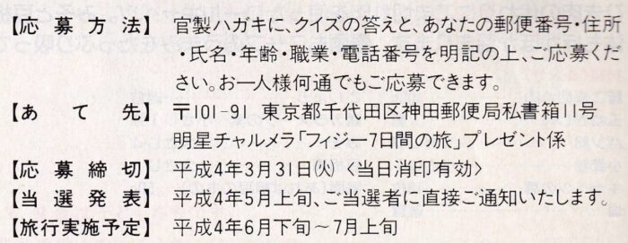 1992年(平成4年)の懸賞情報「明星食品 明星チャルメラ25周年記念キャンペーン&ひでこ祭り」
